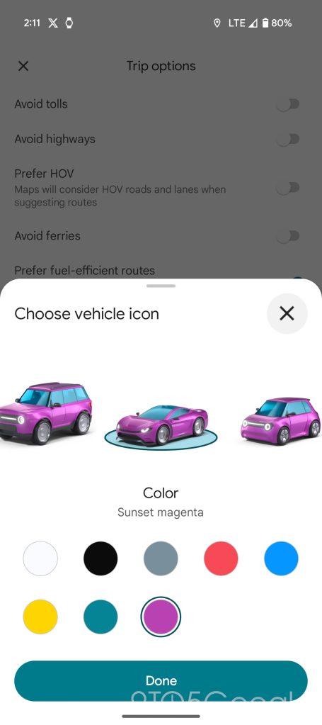 Back in February 2025, Google Maps introduced more options for your vehicle icon while in navigation. Instead of the typical blue dot/arrow, users can select a number of different vehicle types and then customize the color. It’s a neat little addition that first appeared in Waze.