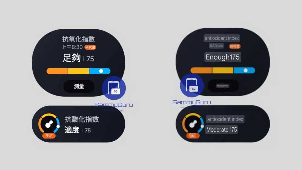 Previous leaks have suggested that Samsung wants to introduce an “Antioxidant Index” along with other changes. This leak corroborates that with both half and full-size tiles for the new feature, displaying orange, yellow, and blue zones pertaining to carotene levels.