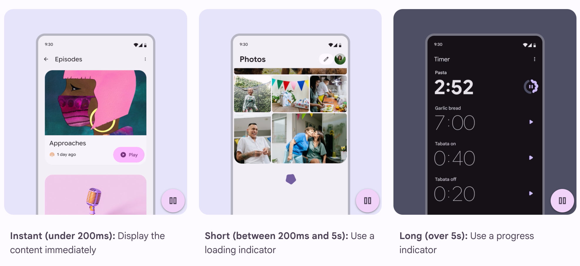 Google recommends the loading indicator to “show progress that loads in under five seconds.”