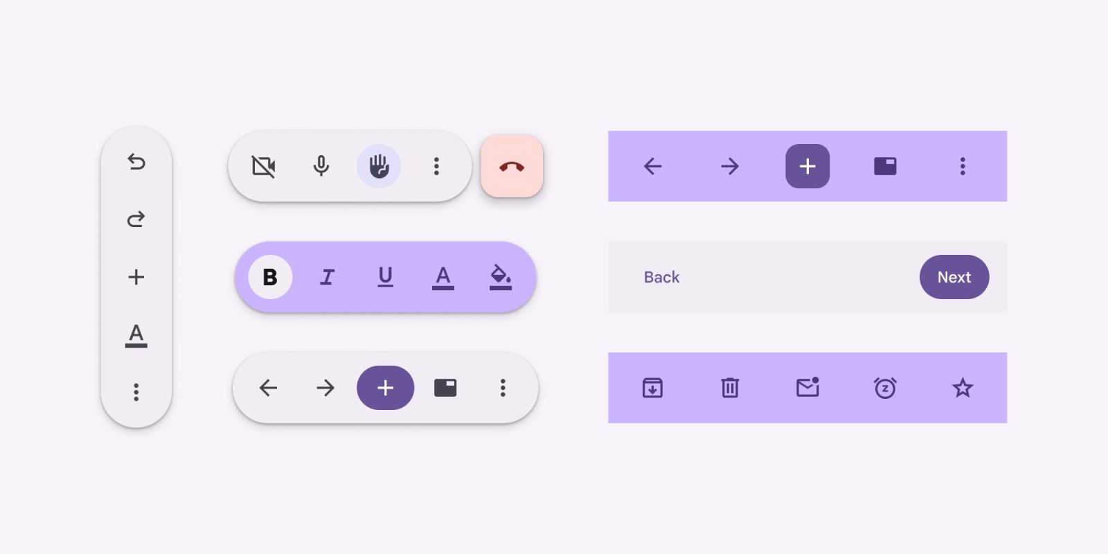 - Apps can pair a floating toolbar and FAB together.