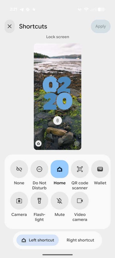 Another big adjustment is how shortcuts are displayed. The new lock screen shortcuts menu offers a grid of options instead of a carousel. This makes it a little easier to compare the available choices at a glance. The toggle between left and right is now at the bottom of that screen.