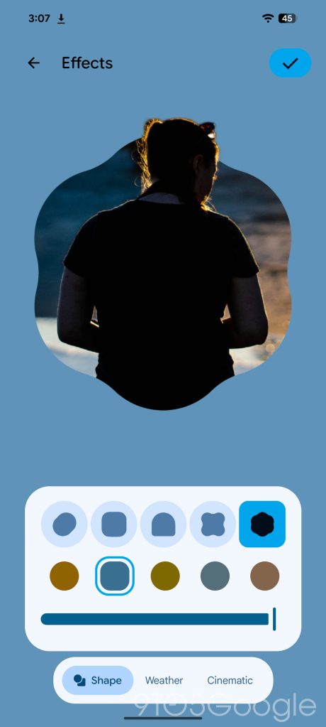 Once you enter the “Effects” section, your picture can have one of three different effects applied. The first is “Shape.” This effect isolates the subject of your wallpaper and fits it into one of five different shapes, usually with a portion of the subject being cut out and extending outside of that shape. Samsung has been offering a similar option on Galaxy phones for a while now.
