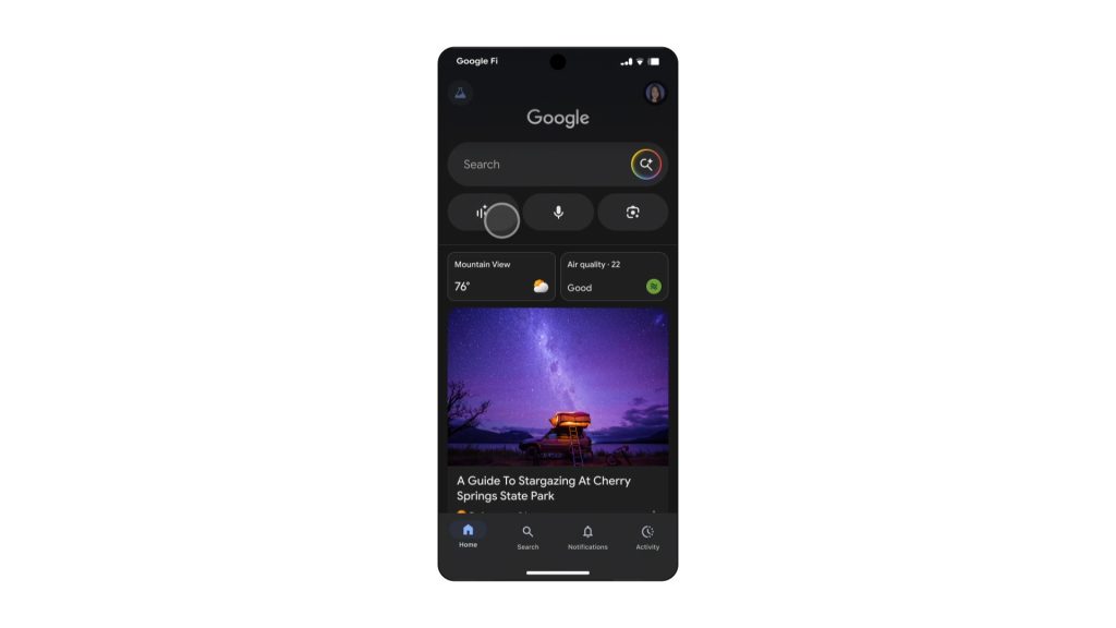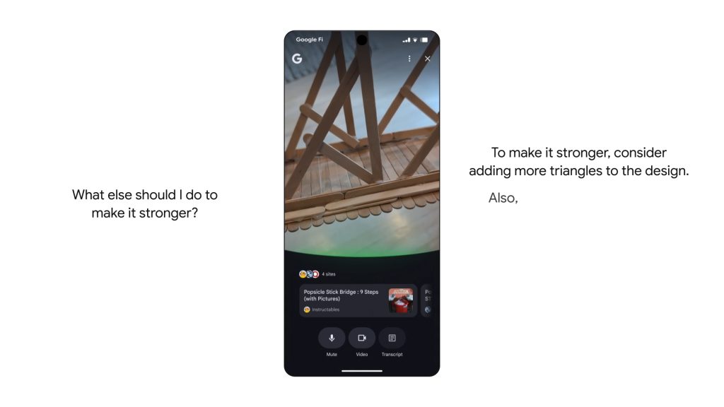 This upcoming capability lets you have a back-and-forth conversation with Search, while surfacing a carousel of links right in the fullscreen interface. Besides voice (which looks to be the default mode), this includes sharing your camera feed to add real-time context to your question.