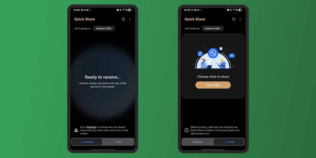 Another big adjustment is the file picker in the sending screen. When you’re looking for someone to send something to, you can simply choose the recent file from the Quick Share app. This is another change that cuts a step or two out of the entire process.