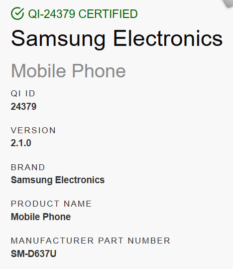 The listing doesn’t tell us much beyond saying that this is a mobile phone and that it is “coming soon.” The device carries the model number SM-D637U which, at first look, is strange. Samsung’s model numbers typically follow a predictable pattern, but this one doesn’t fit into any other line-ups.