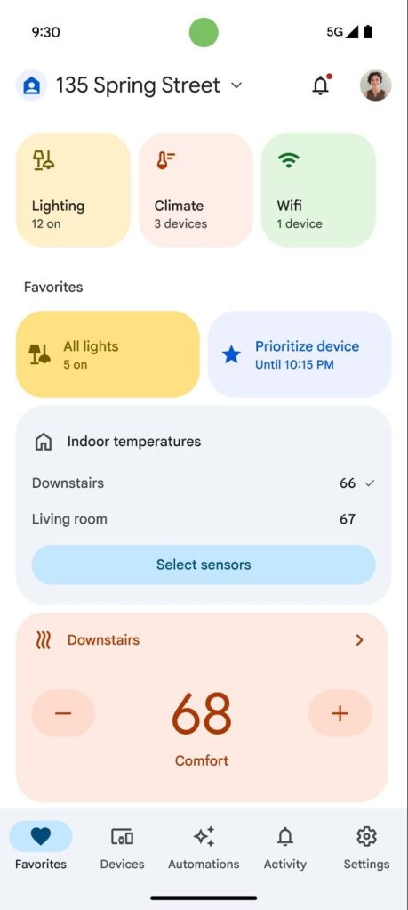 Google also says device-specific Favorites are “coming soon,” with the Home app adding additional tiles like “the indoor temperatures dashboard, Wi-Fi actions, and whole home lights on-off for instant access.”