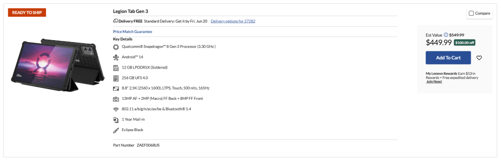 Lenovo launched the Legion Tab in January for $499, with the tablet immediately going out of stock for a while before, eventually, getting a small price hike to $549. Most users haven’t had to pay that price, though, as the Legion Tab has consistently been on sale in the time since.
