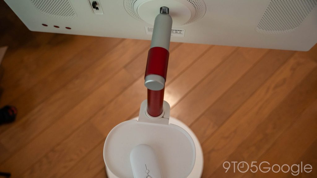 As mentioned, the entire thing is on wheels. The base is hefty and contains, among other things, the 9,500 mAh battery that can run the display for a few hours. The construction is sturdy too. Assembly only took about 10 minutes (all tools included) and it all feels rock solid. The wheels aren’t very big, so thresholds or rugs along the floor might require you to pick the whole thing up.