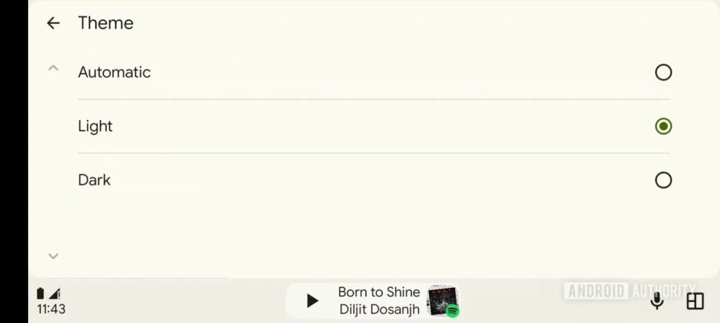 In the first beta update for Android Auto 14.7, Google has added strings that directly reference light mode and a new “Theme” section in the Settings. An “Automatic” option also confirms speculation that the two themes will be able to swap based on the time of day and/or your car’s lights.