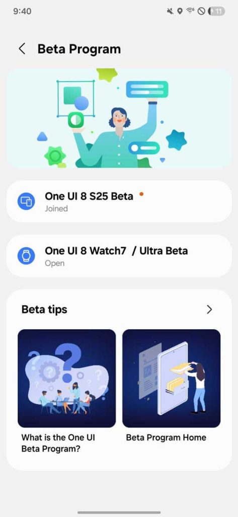 - Tap One UI 8 Watch 7 / Ultra Beta.