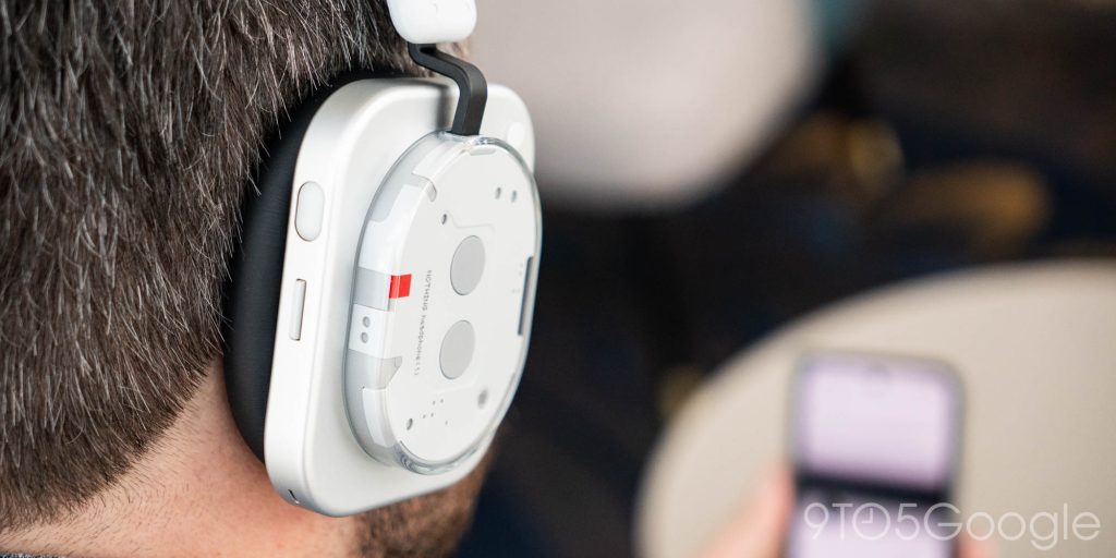 The hardware itself is also very well built despite not using the most premium materials. The glossy portion is plastic, and the metal chassis doesn’t have the expected heft. That latter portion is good news, though, because it makes for a pair of headphones that’s comfortable over time. Both in wearing Headphone (1) through a workday and on a transatlantic flight, they remain comfortable for hours at a time. They only became uncomfortable to me about 7 hours into a 9-hour flight back home from Nothing’s London launch event, but even then I just needed to take a 10-minute break and I was just fine. There’s very little, if any, ear fatigue thanks to the memory foam cups, and the band across the top does a good job in keeping the weight off. These headphones are definitely heavier than many others, but the hardware does a good job of hiding that. There’s something to be said about sweat wearing these in a warmer environment, but that’s my only real complaint in wearing them.