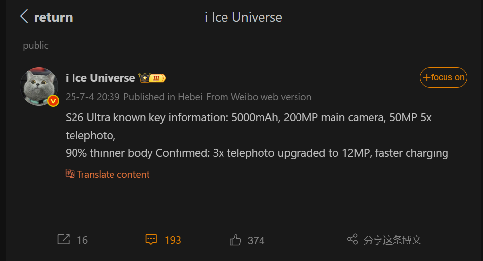Despite sticking with a 5,000mAh battery, Ice Universe says the Galaxy S26 Ultra will sport a slimmer design than its predecessor. The Galaxy S25 Ultra feels pretty bulky in the hand, even before holding it next to the Galaxy S25 Edge. Anything Samsung can do to improve this — like, say, utilizing the techniques it learned in developing the Galaxy Z Fold 7 — would go a long way. Finally, similarly to the telephoto changes, Ice Universe remains all but sure this phone will have faster charging.