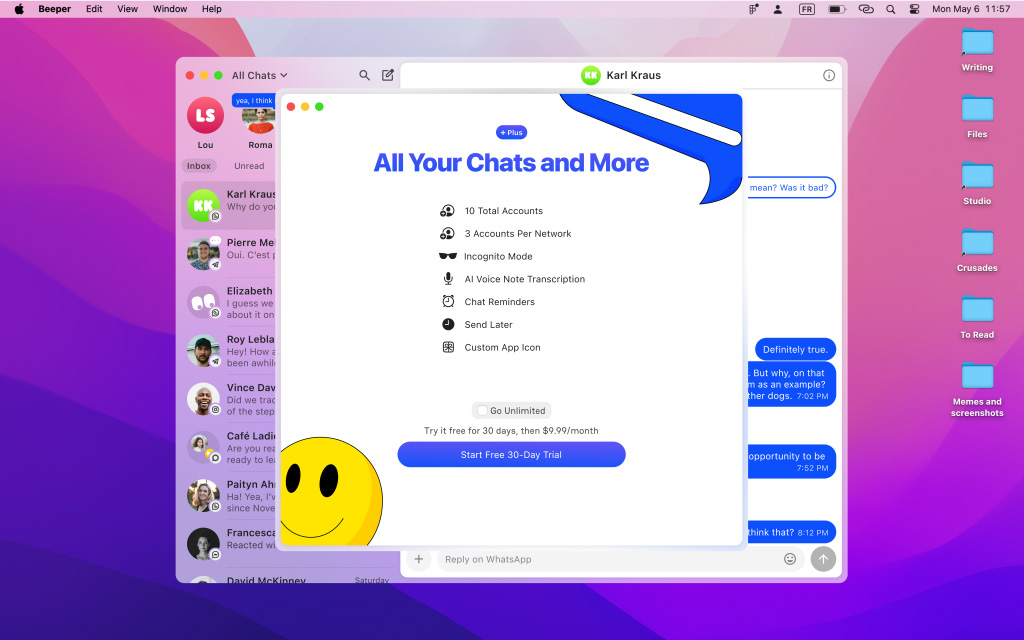 Beeper Plus also unlocks custom app icons, as well as the ability to use multiple accounts for the same network (i.e. two WhatsApp accounts), but only up to 3 per network, with a maximum of 10.