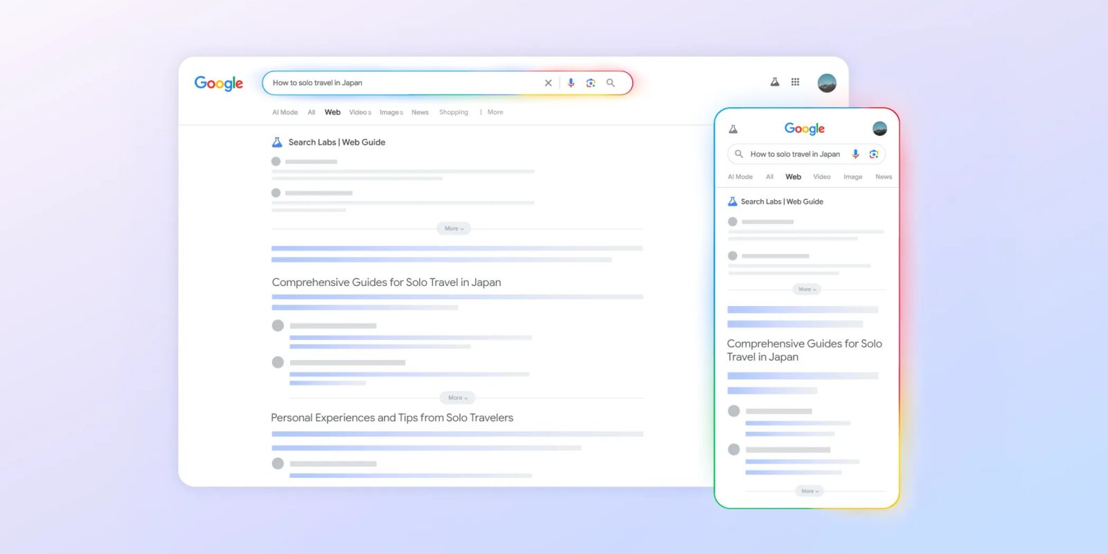Google says Web Guide is ideal for both open-ended searches (“how to solo travel in Japan”), and detailed queries in multiple sentences: