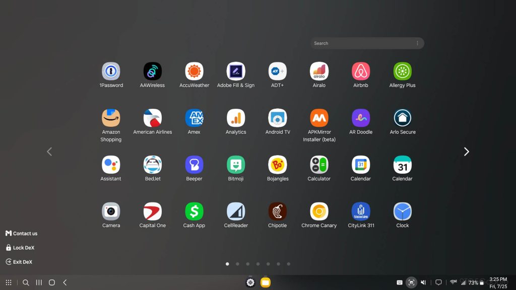 The new experience, for the most part, feels near-identical to what came before. You’ll get some fresh UI elements in the Quick Panel, but things are pretty similar on the whole. Some notable changes we spotted include the removal of a dedicated DeX tab in the Settings when you’re connected to an external display (replaced with the “Connected display” menu), and the “Exit DeX” button is no longer in the app drawer. On the bright side, though, that app drawer now scrolls vertically. The taskbar also now mirrors the docked apps on your phone’s display. That’s one of the places we can see connective tissue between Google’s desktop mode in Android 16 QPR1 and Samsung’s updated DeX experience.