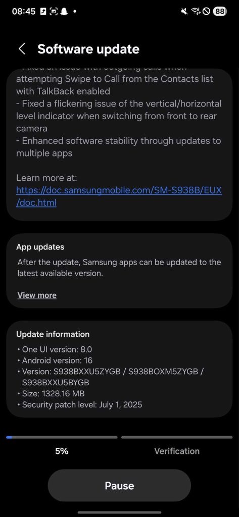 The update weighs in at roughly 1.3GB and carries a changelog full of fixes, including fixing fullscreen videos on DeX as has been noted as a problem with the current Android 16-based iteration. The update also packs the July 2025 security patch.