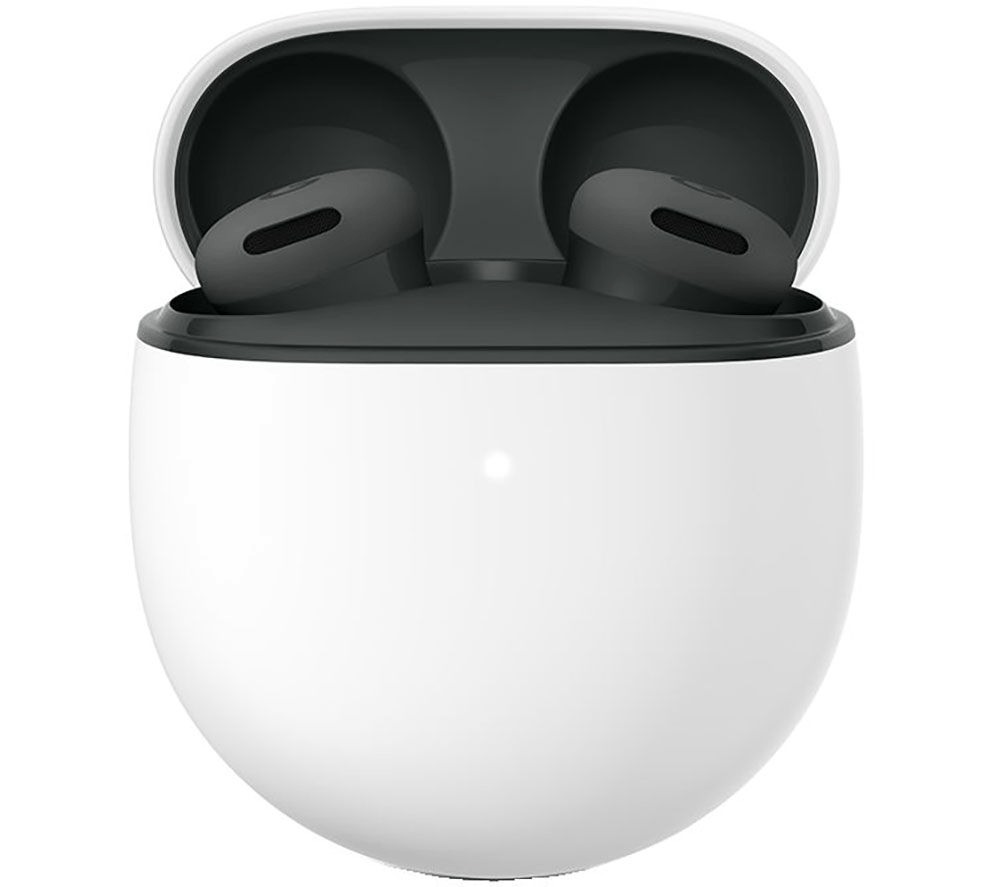 In this image, we can see that Pixel Buds 2a will be using the same basic case design that Google has been using on all of its earbuds, but with a single color used throughout the inside of the case to match the earbuds themselves. Google’s “Pro” earbuds have a black color for the case, regardless of which color the earbuds are.