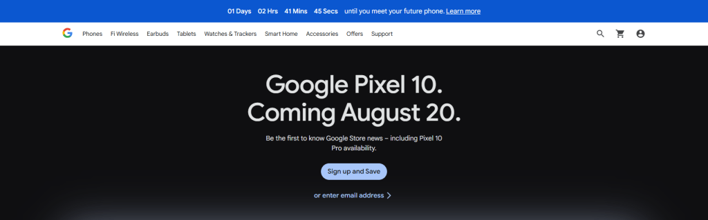 The Google Store is teasing the upcoming Pixel 10 launch with a new banner counting down to the launch and calling the series “your future phone.”