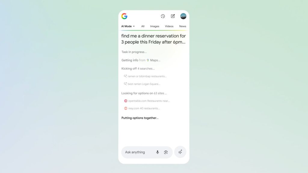 In the future, this will also work when looking for local service appointments and event tickets. This is coming first to Google AI Ultra subscribers in the US that have enabled a new “Agentic capabilities in AI Mode” lab.
