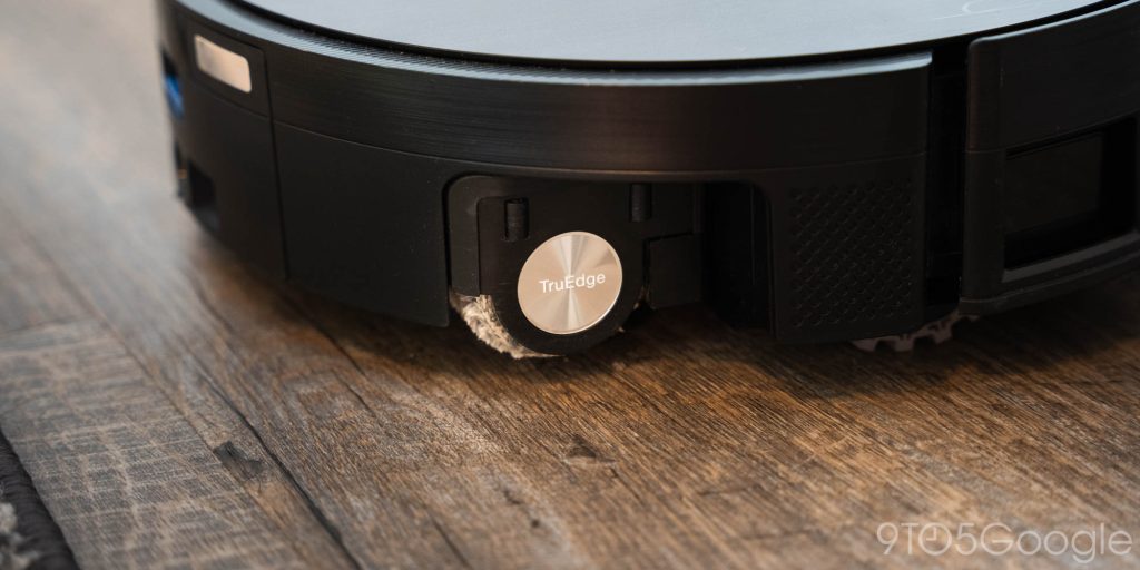 TrueEdge 3.0 does a good job of getting as close to edges as possible. It makes up for that space between the bot and the wall, covering more ground as it mops. The side of the mop has little wheels installed so that it glides along walls without doing damage.
