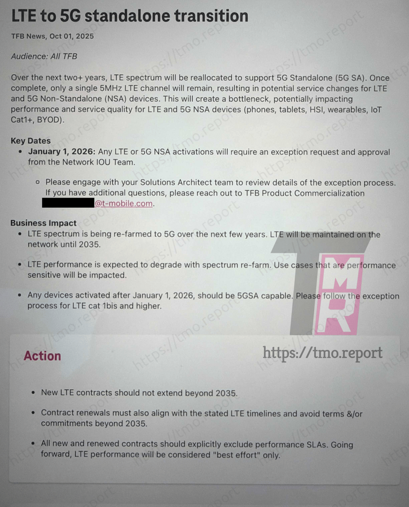 There are a couple of crucial dates shared here. First, beginning on January 1st, 2026, this document states “LTE or 5G NSA activations will require an exception request and approval from the Network IOU Team.” This point — and the document as a whole — specifically relates to business customers; there’s no word yet on how this could affect consumer-level T-Mobile subscribers. Considering T-Mobile is looking to have its business customers only activate 5G Standalone products beginning next year, though, don’t be surprised if similar restrictions appear.