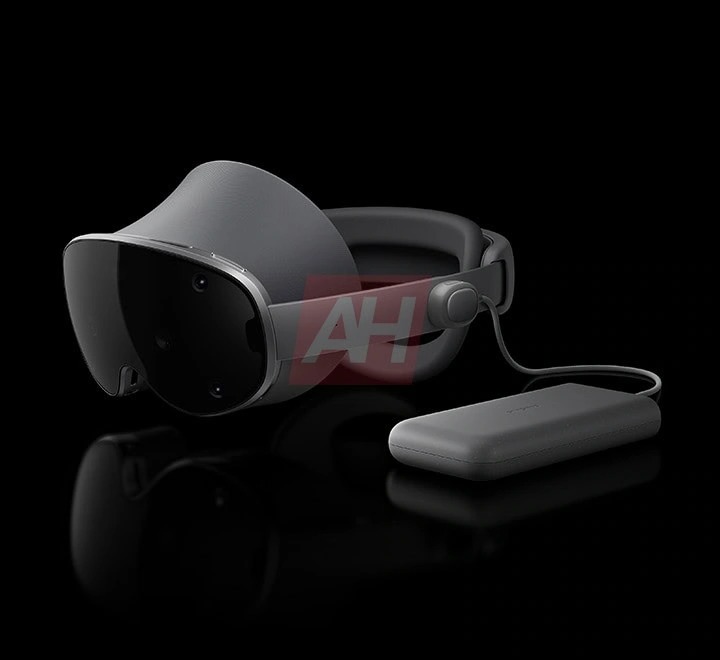 Largely speaking, this device appears to be pretty in-line with modern VR/XR headset design. You have two lenses hiding a 4K micro-OLED display under a passed forehead rest, an adjustable strap that reaches around the back with a tension knob for tightening, and an attached battery pack for keeping as much weight off your face as possible.