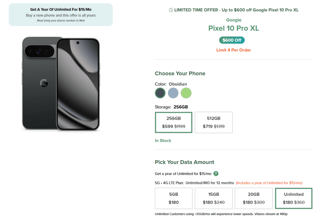 Google Pixel 10 series up to $600 off in Mint Mobile bundle deal