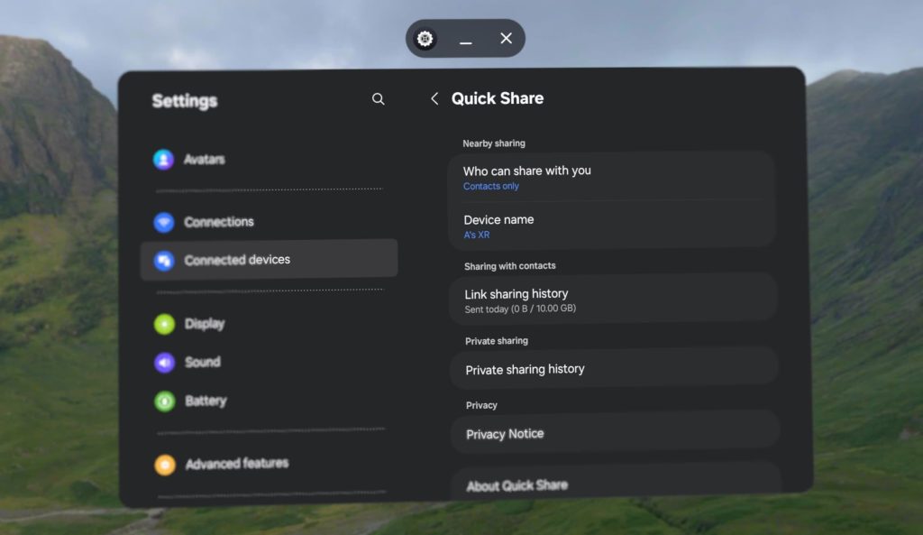 The onboarding experience for Galaxy XR is just like setting up any other Samsung device, while Android XR’s homescreen equivalent lets you pin 10 apps. By default, the first three are Samsung’s Camera, Gallery, and Internet.