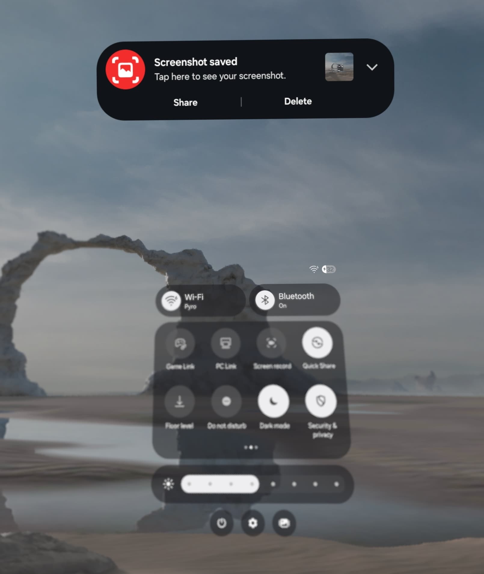 Going into Quick Settings reveals Tiles right from Samsung phones, including: Microphone access, Smart View, Take screenshot, PC Link, Screen record, Do not disturb, and Dark mode. Then you have the One UI media controls, familiar power menus, volume sliders, notifications, and multitasking.