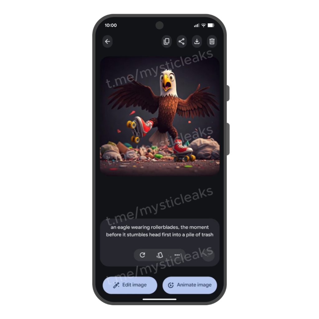 Then, there’s support for creating animations within the Pixel Studio app. This would allow users to “transform any image” into a GIF or animated sticker for further sharing. A video showing this in action shows how to create an image using a text prompt and then animate it using an “Animate image” button.