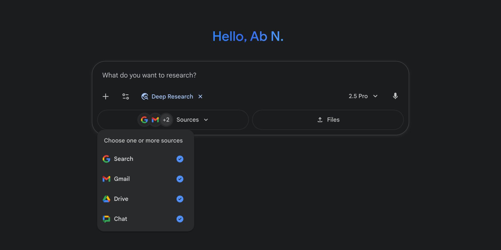 After adding PDF support in May, Gemini Deep Research can now directly tap information stored in your Gmail and Google Chat conversations, as well as Google Drive files.