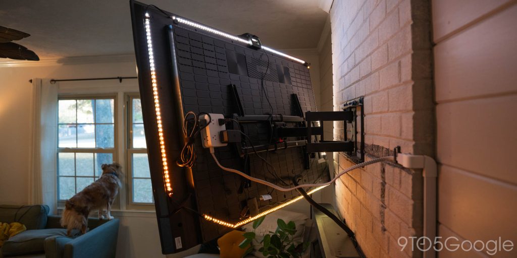 The entire kit is pretty easy to set up. It comes with everything needed, including small secure clamps that hold the LED strips down even further, where the corner cabling’s twists might want to push the adhesive from the TV. Both the camera and LED strips connect to a small power box that can also be stuck to the back. From there, a single power cord gets plugged in.