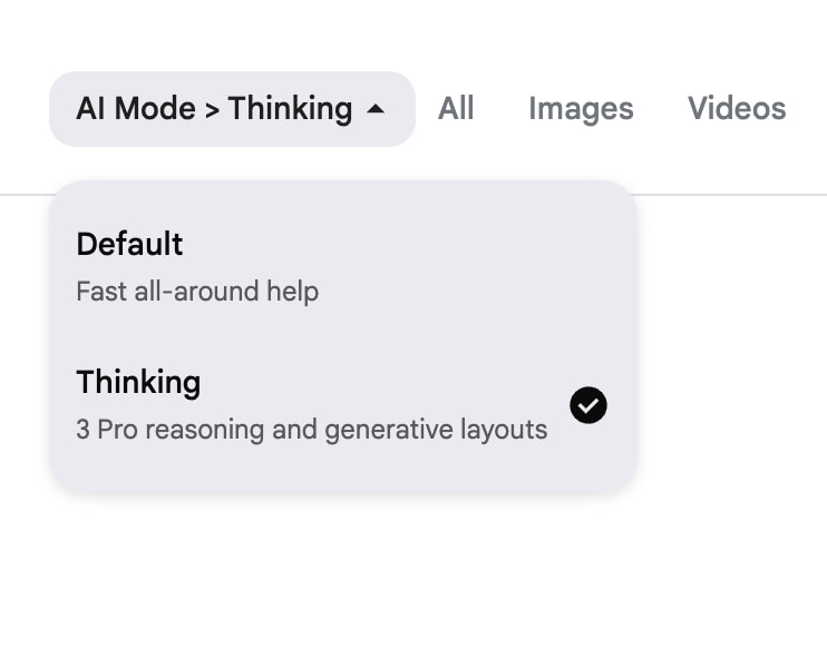 This naming approach is mirrored in AI Mode: “Default: Fast all-around help” or “Thinking: 3 Pro reasoning and generative layouts.” Gemini 3 Pro rolled out yesterday to AI Pro and AI Ultra subscribers in the US.