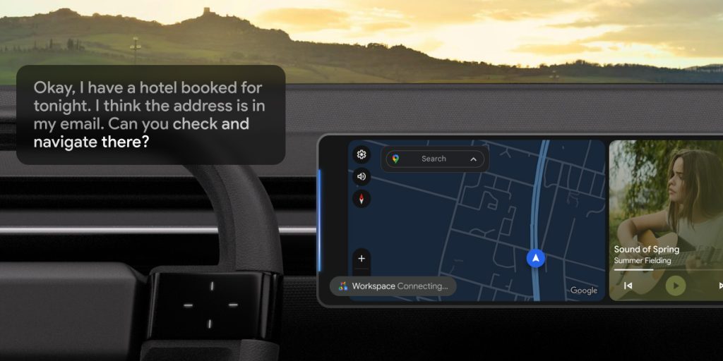 Gemini for Android Auto will further benefit from extensions, being able to do things such as finding an address from a hotel reservation in your Gmail inbox.