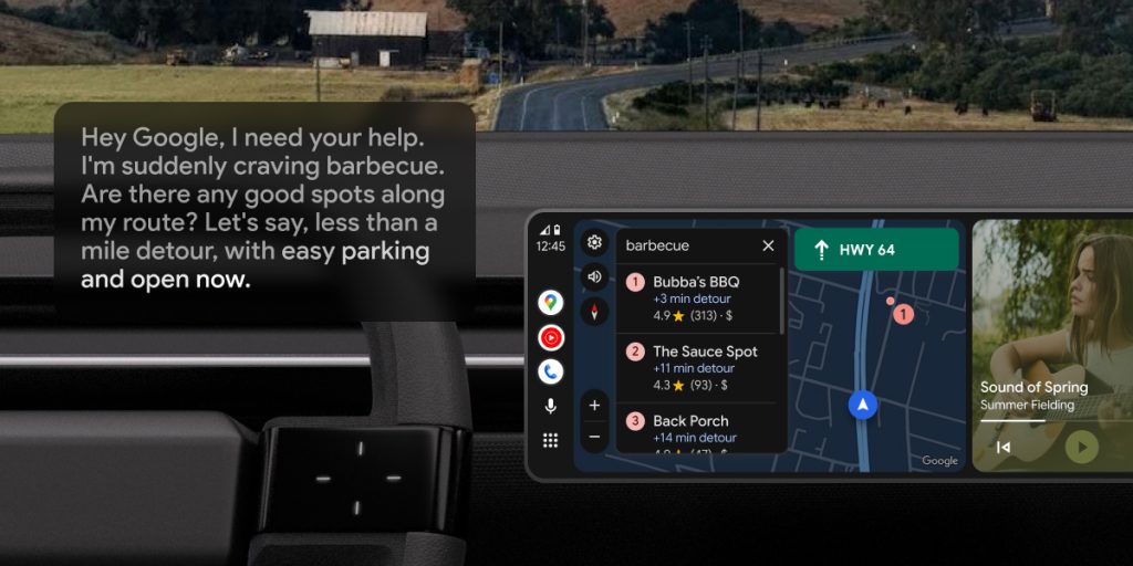 In a blog post around the launch, Google goes over a handful of key upgrades that come with Gemini for Android Auto, including the ability to add stops on Google Maps while getting recommendations for those locations and being able to ask follow-up questions. Sending text messages with your voice will also benefit from the ability to make adjustments in natural language and with the ability to translate the message as it is sent. One example Google offers is: “One more thing. Can you also ask if he wants to grab coffee after the game? And please translate the message into Spanish.” The AI will also be able to generate playlists on demand through Spotify and YouTube Music.