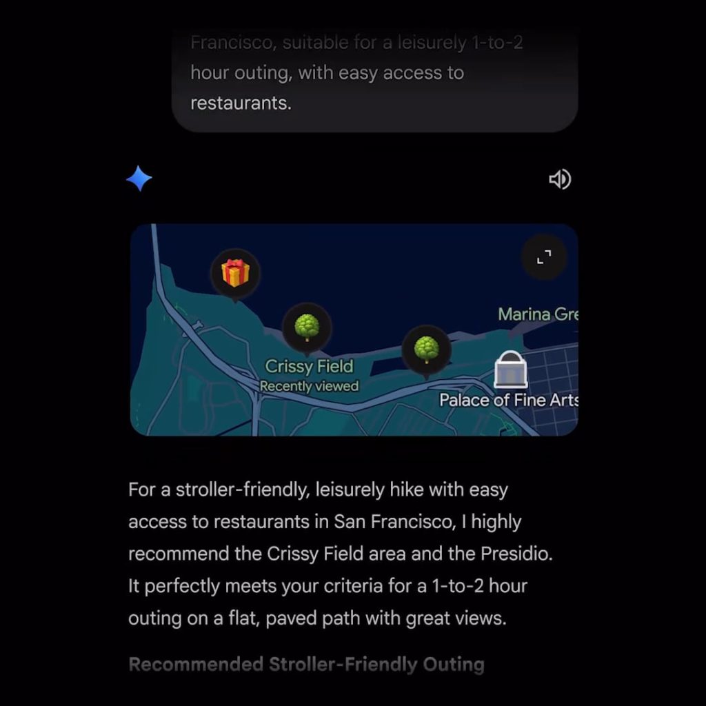 Previously, prompts that invoke Google Maps resulted in responses that were primarily text with a map view at the end featuring pins showing the locations Gemini found.