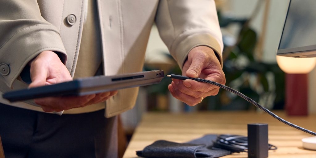 When you attach a USB-C cable to the keyboard and to a compatible monitor, the whole thing comes to life and acts as a full Windows desktop computer. There are two USB-C ports on the keyboard, so you can use a second one for additional accessories or power if the monitor you’re using doesn’t support this. There’s a version with a built-in battery as well.