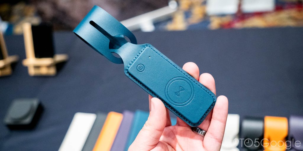 But what really caught my eye were the new Nimble tracking products which work with both Apple Find My and Android Find Hub tracking networks – one or the other at any given time, as per usual. These trackers come in designs including a tag, luggage tag/label, a wallet, and a passport holder. The four products all work with Google’s network, and use a plant-based leather as well. In checking these out in person, I was pretty happy with the overall fit and finish.