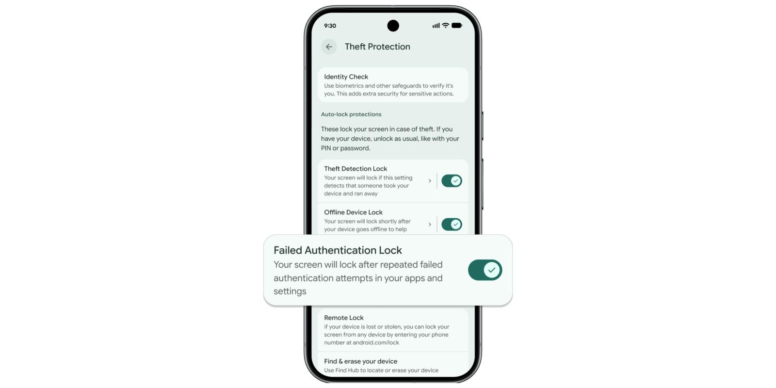 “Failed Authentication Lock” will lock your screen “after repeated failed authentication attempts in your apps and settings.” This functionality was introduced last year, but Google is now giving it a “dedicated enable/disable toggle” alongside Theft Detection Lock and Offline Device Lock. You can find it (on Pixel) in Settings > Security & privacy > Device unlock > Theft protection on Android 16+.