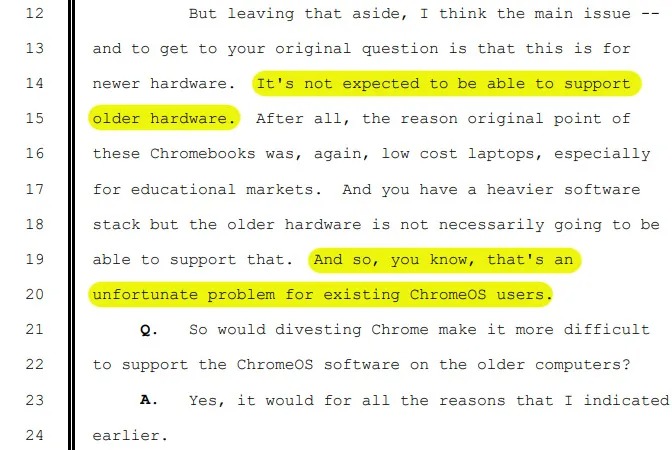 That was all revealed in court documents surrounding the antitrust case that, at one point, threatened to force Google into selling Chrome. As it turns out, a key reason why Google was allowed to retain Chrome was ChromeOS, and specifically, how long it would need to stick around. Google being forced to sell off Chrome with all of these plans in process would mean that it would be much more difficult to support ChromeOS on older machines.