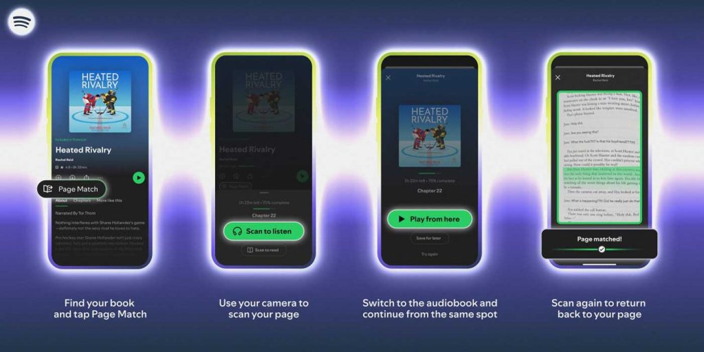 Premium members can use this feature with any book. As mentioned, Spotify’s basic subscription allows for a certain listening allotment, while the company’s Audiobook+ plan brings that total to 30 hours. Page Match will also be available for free users, given they’ve purchased the audiobook individually.