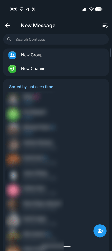 The hamburger side menu has also been entirely removed at this point, with “New Group” and other remaining features from that menu now found in a three-dot overflow menu at the top right of the chats screen.