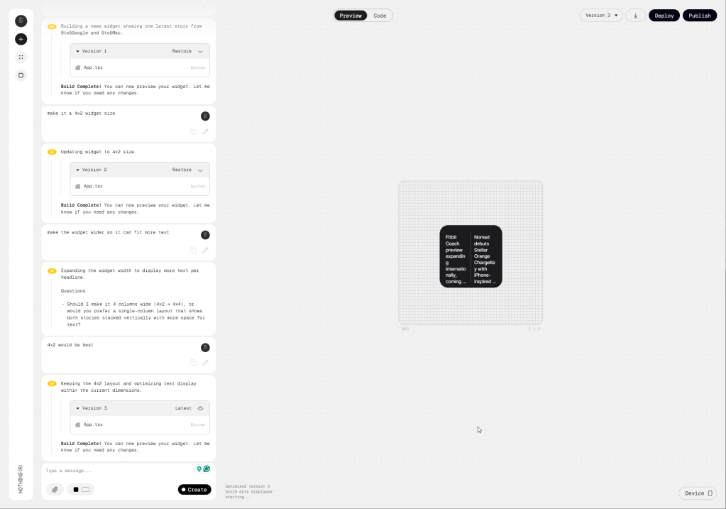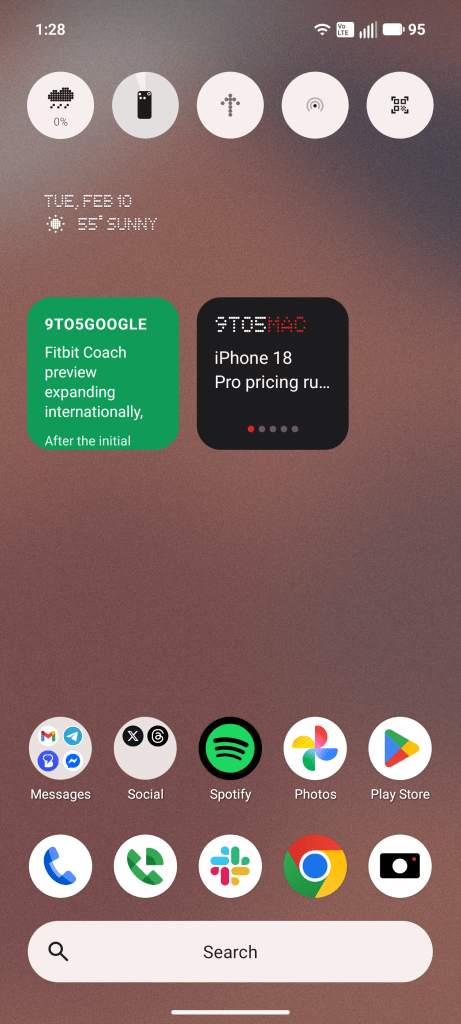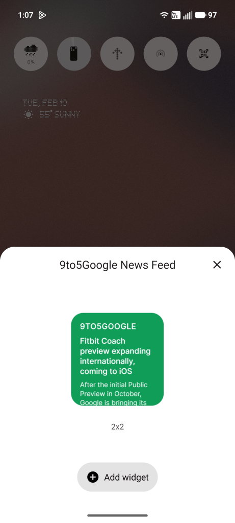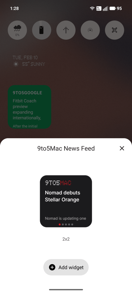 A simpler idea was pulling the latest stories from NewGeekGuide and 9to5Mac on the same homescreen widget. Or at least, I thought it would be simple. The Playground refused to create a 4×2 widget, instead just sticking with a 2×2 size that simply isn’t big enough for anything like this. Some of the early builds from other users show 4×2 sizes and Nothing says it’s possible, but the Playground just wasn’t cooperating with me.