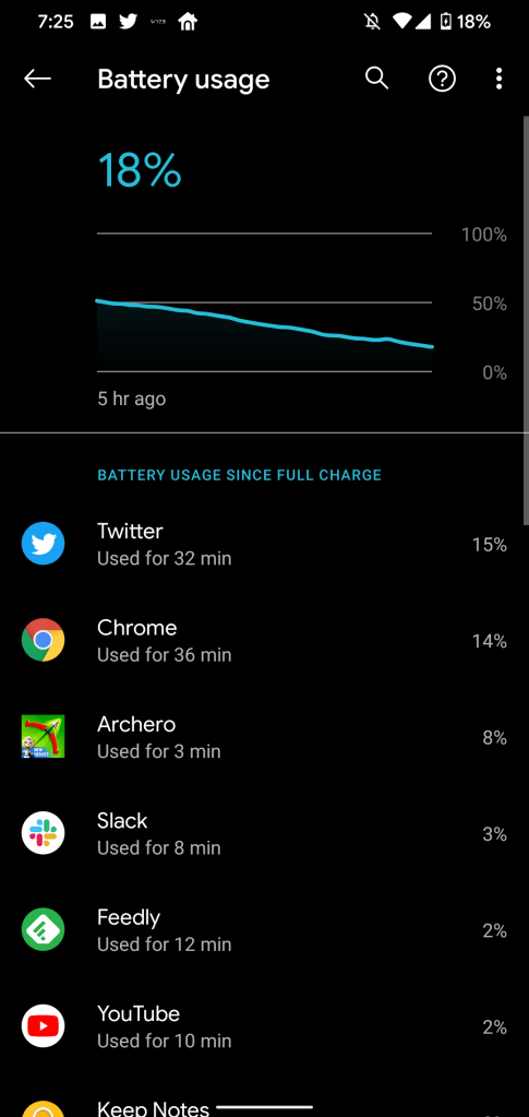 My average day starts around 7:30 am and involves lots of Twitter, Reddit, RSS apps like Feedly, taking some pictures, sending a bunch of messages, and keeping tabs on my email. There’s an occasional game and a few YouTube videos too. It’s not heavy use by any means, but after just 2.5-3 hours of screen time and 12 hours of use, I’m usually down to 15-20% and need to charge by 7pm. The longest I was ever able to make the phone last was until 10pm, but that was by activating battery saver early and limiting my use too.