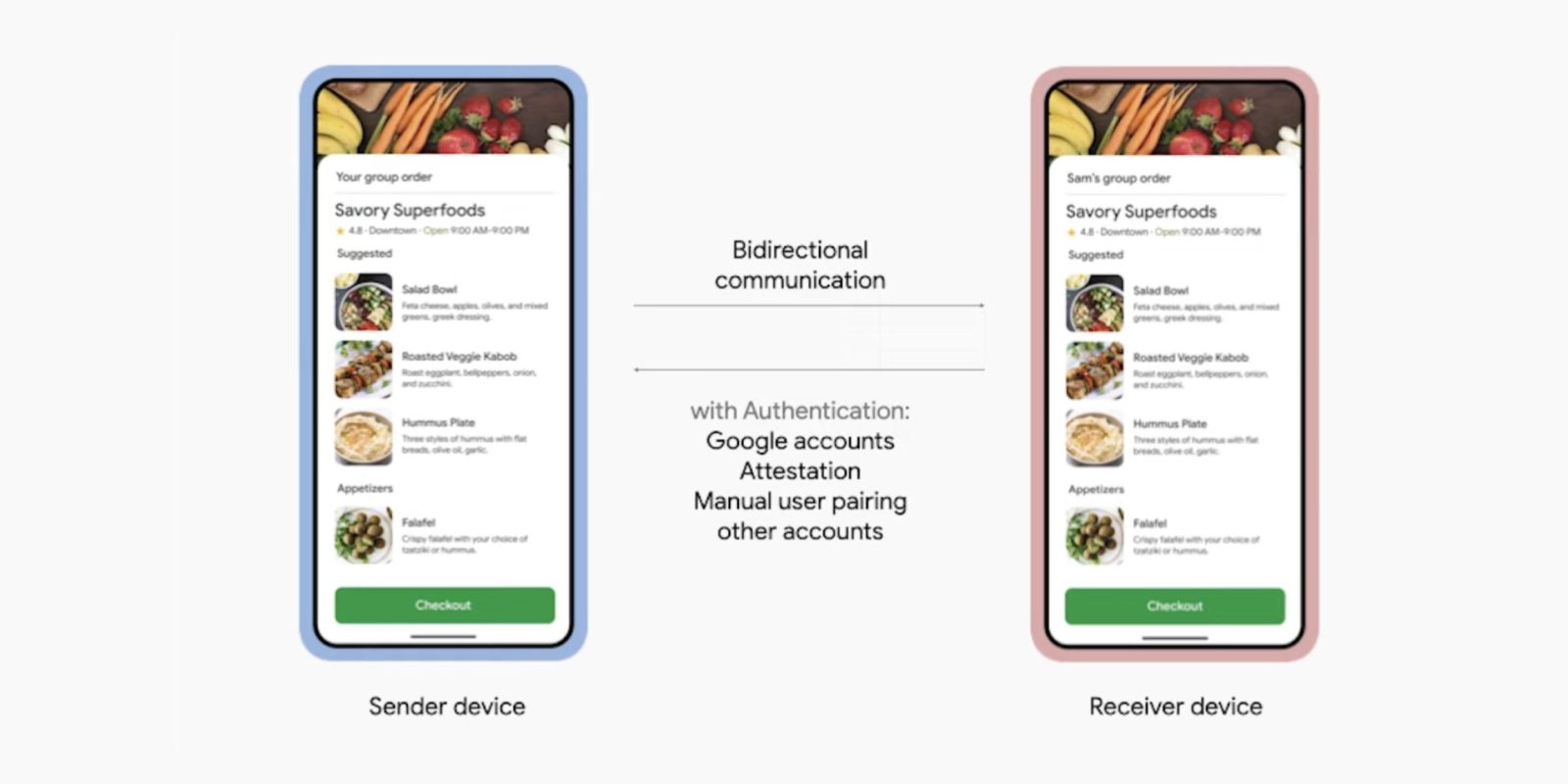 To simplify the work to discover devices that can participate in a multi-device experience, we extracted the logic Nearby Share uses to discover and authorize devices and augmented it with additional capabilities so that your application can easily join devices in a shared experience while preserving user privacy.