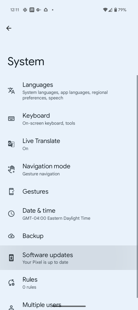 The easy way to install Android 15 on Google Pixel devices is through an over-the-air update. To do this, you’ll go to Settings > System > Software updates, and press the “Check for updates” button.