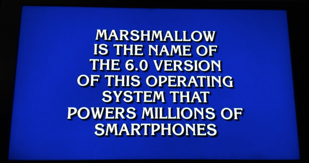 Of course they could (or not) go the Apple route and create a situation with complete control over the entire ecosystem, but Google’s tactic of trying to make OS updates familiar and friendly is about as much as it can do for now. Apparently it’s not working, and this is perfectly illustrated in a recent round of Jeopardy! where two contestants both thought that Marshmallow is the name of iOS 6.0…