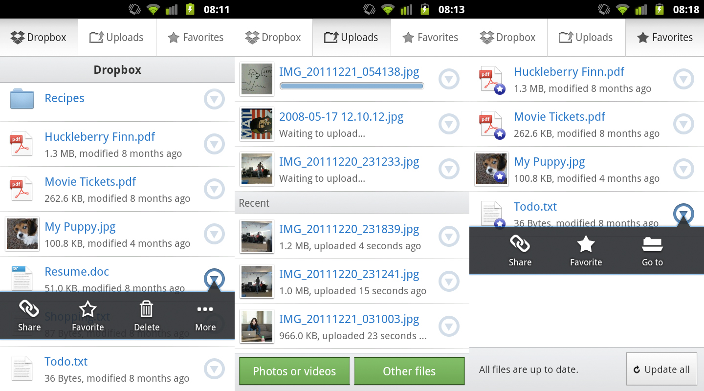 “Want to make sure a file is always on your phone?” asked Dropbox in a statement on its blog, regarding the service’s new Favorites feature. “Star it for quick offline access.”