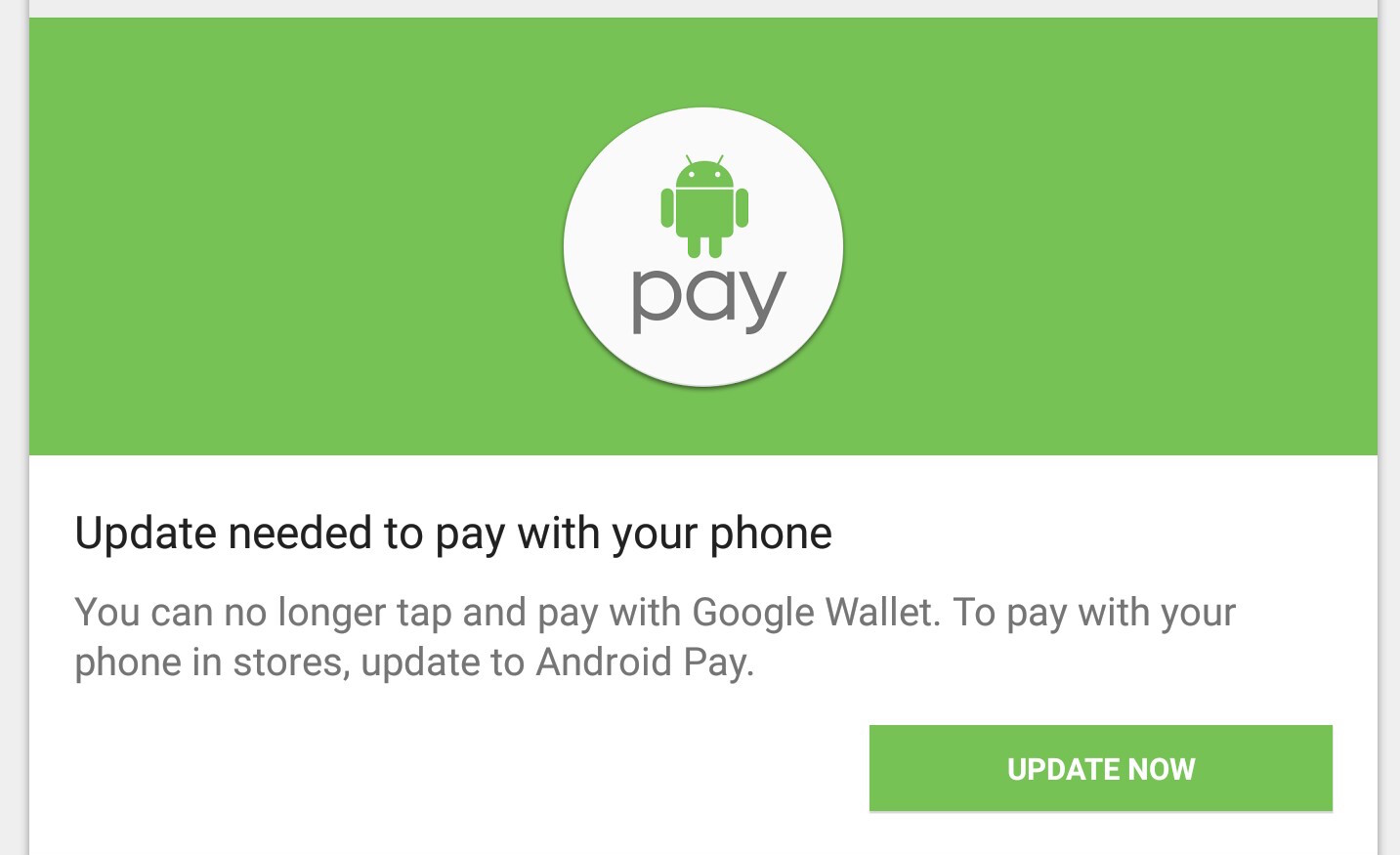 If you’re an Android Pay holdout, you might have found this morning that tap and pay has stopped working with the old Google Wallet app. Google has been warning users since Android Pay first became available three weeks ago that they need to update to the new app to keep using tap and pay, and now the Mountain View company is requiring it…