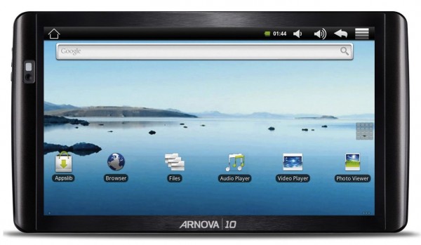 The Archos 10 tablet isn’t exactly new to the block, being more than a year old. The tablet features a 10.1-inch display, 1 GHz processor, front-facing VGA camera, and preloaded newspaper software for reading.